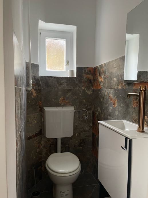 2 velike soba plus dnevni boravak s kuhinjom i blagovaonicom, kupaonica, wc, ostakljeni predulaz