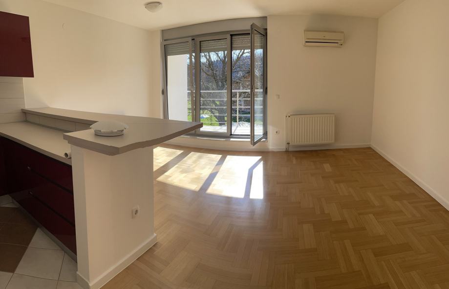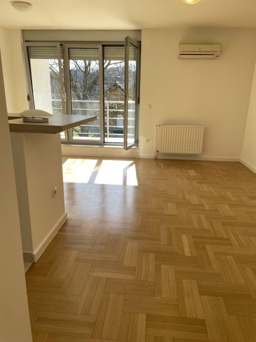Iznajmljuje se lijep, visoko kvalitetan, komforan 2-sobni stan na 1. katu urbane vile, s dva parkirna mjesta, pun svijetla i besprijekorno čist. Nalazi se na mirnoj lokaciji u urbanoj vili sa svega četiri stana. Ima balkon s pogledom prema potoku Trnava. Podovi su od hrastovog parketa, unutarnja stolarija hrastova, vanjska stolarija aluminijska. Sastoji se od dnevnog boravka, prostrane spavaće sobe, kupaonice s toaletom, zasebnim toaletom, kuhinje s ostavom, te zasebnom ostavom u prizemlju zgrade.