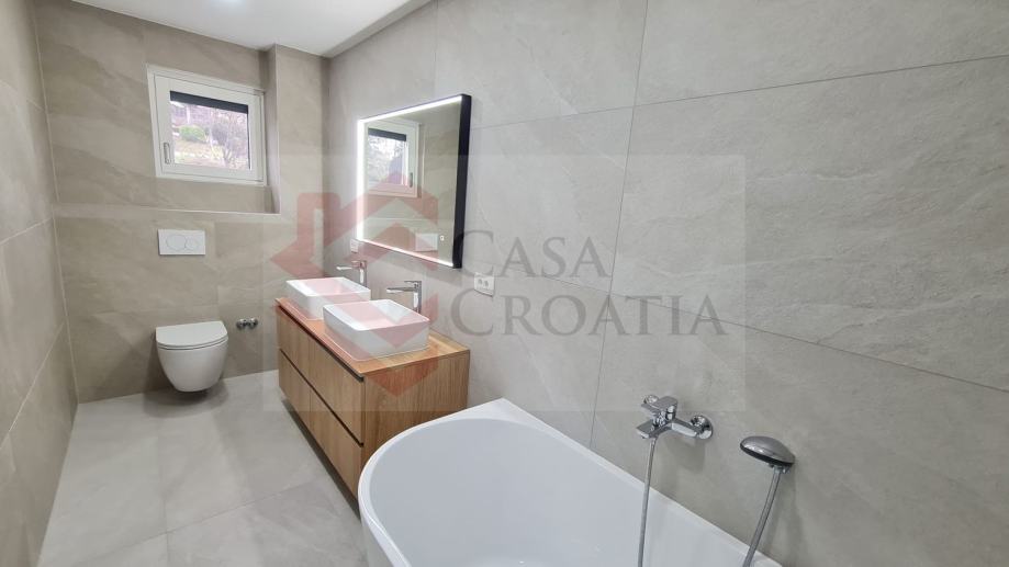Iznajmljuje se troetažan peterosoban stan od 150 m2 u zgradi iz 2016. bez dizala sa zasebnim ulazom s vanjske strane.