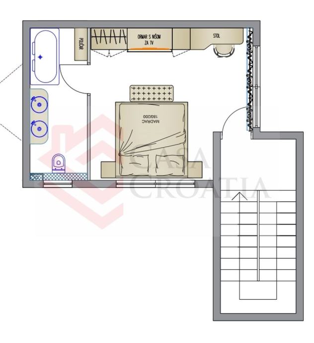 Stan je u potpunosti renoviran i namješten 2024. godine te se sastoji od prizemlja, 1. i 2. kata.