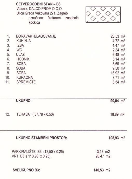 Uz stan je etažiran vrt i jedno parkirališno mjesto.