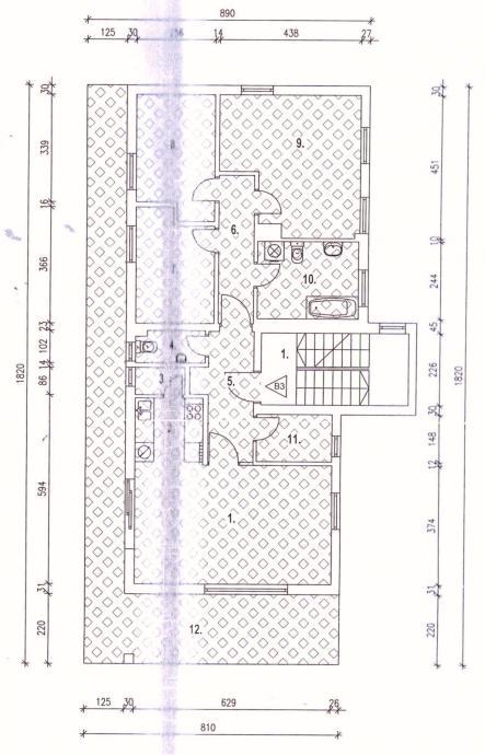 Dnevnog boravka sa kuhinjom i blagovaonicom, izbom, spremištem, WC-a, kupaonice sa WC-om, klasičnom i tuš kadom, tri spavaće sobe i natkrivenom terasom.
