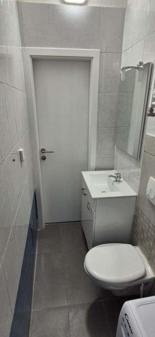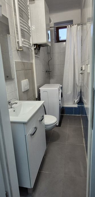 Iznajmljujem stan od 35m2 s pripadajućom šupom od 3,6m2 u dvorištu zgrade (za bicikl i sl.). Stan je opremljen osnovnim namještajem, klima uređajem, perilicom za rublje i posuđe (sve vidljivo na slikama). Najmodavac može osigurati dodatan namještaj i/ili uređaje po dogovoru. Režije ovisno o potrošnji, stan ima vlastito brojilo za struju, plin i vodu. Kućni ljubimci nisu dozvoljeni.