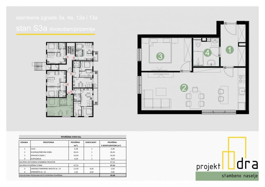 2-SOBAN STAN NKP 47,52 m2 SA VANJSKIM PARKIRNIM MJESTOM I SPREMIŠTEM