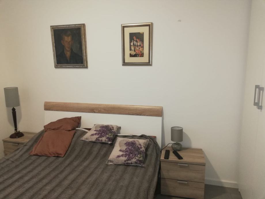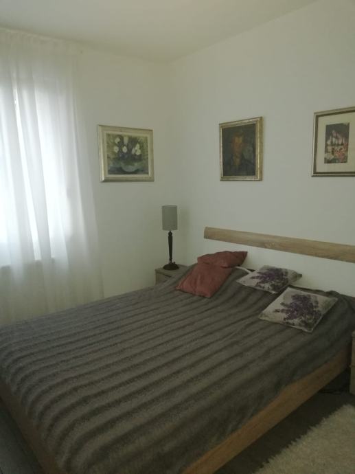 stan se nalazi u slijepoj ulici,na 1 katu u zgradi koja se sastoji od podruma, prizemlja, kata i potkrovlja. Stan se sastoji od ulaznog predsoblja, lijevo se ide u dvije spavaće sobe i kupaonu sa kadom i wc-om, desno od ulaza se ide u dnevni boravak, iz kojeg se izlazi na balkon, u blagavaonicu i kuhinju. Stanu pripada spremište u podrumu i vanjsko parkirališno mjesto ispred ulaza u zgradu.