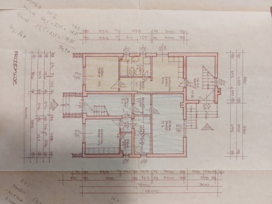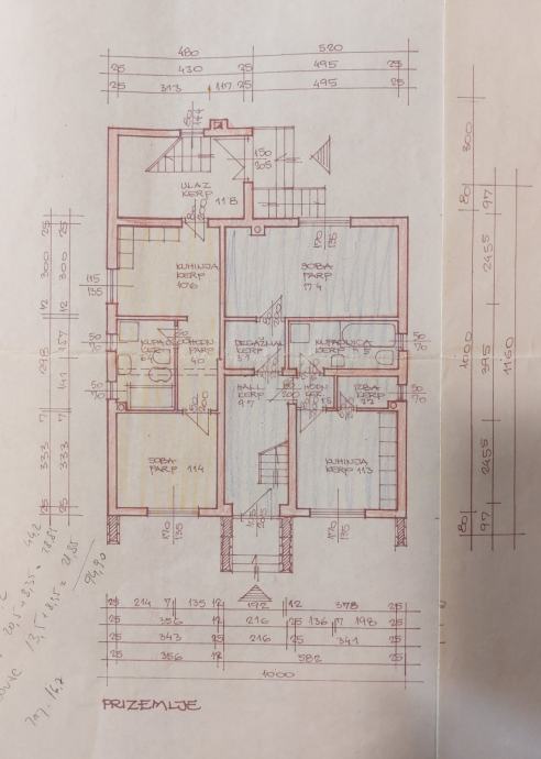 prizemlje; hodnika, kuhinje s blagovaonicom, kupaonice sa sanitarnim čvorom.