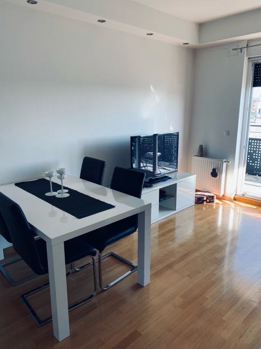Iznajmljujem jednosoban stan u Zagrebu, u blizini Kvatrića. Stan se sastoji od ulaznog hodnika, kuhinje s blagovaonom i dnevnog boravka, jedne spavaće sobe i kupanice s wc-om, te balkonom. Stanu pripada jedno garažno mjesto na razini -1. Orijentacija je istok/jug. Stan je dostupan za dugoročan najam od 1.03.2026. Stan je potpuno namješten.