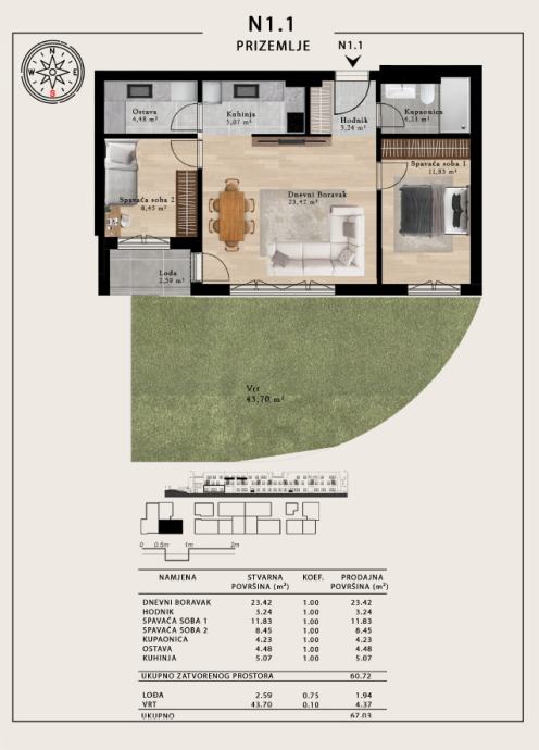 PROJEKT LUKORANSKA II - MEBALIFE, STAN N1.1 (67,03M2) - 3300€/M2 (prodaja)