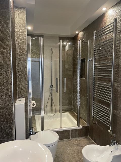 The apartment is very spacious and very nicely decorated. It is located in a quiet residential building with an elevator built in 2000.