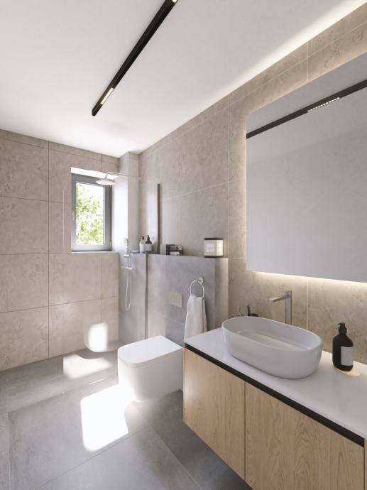 Podno grijanje u cijelom stanu pruža ugodan i ravnomjeran toplinski komfort, dok luksuzni walk-in tuš donosi osjećaj pravog wellness iskustva. Pravilno radpoređene klima jedinice osiguravaju ugodnu mikroklimu a vanjske jedinice su smještene na krov tako da ne narušavaju pročelja.
