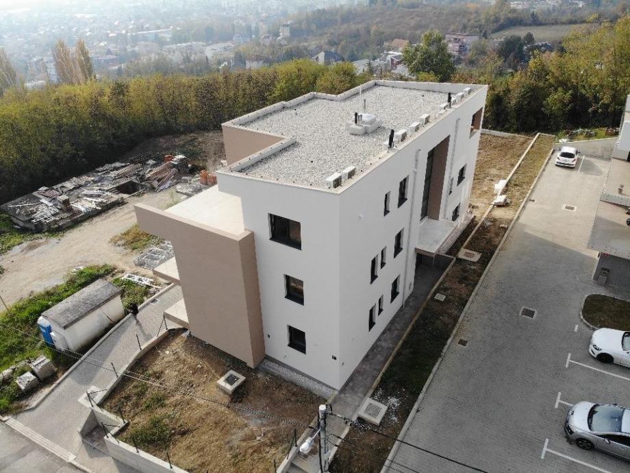 Fasada je obložena demit sustavom s EPS izolacijom debljine 14 cm, proizvođača Weber (Njemačka), čime je postignuta izvrsna energetska učinkovitost i estetska privlačnost. Krov je ravan, prekriven TPO folijom i kamenom oblutkom, izolacijom debljine 30 cm, što osigurava visoku otpornost na vremenske uvjete.