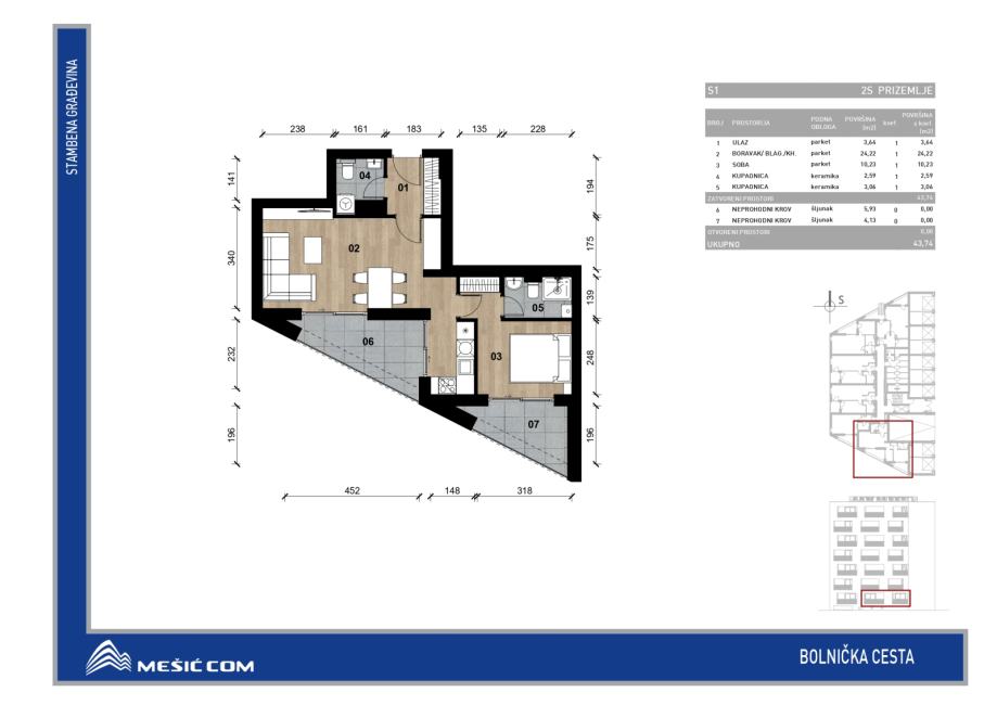 Uz kupnju stana obavezna je kupnja vanjskog parkirnog mjesta, garažnog parkirnog mjesta ili garaže.