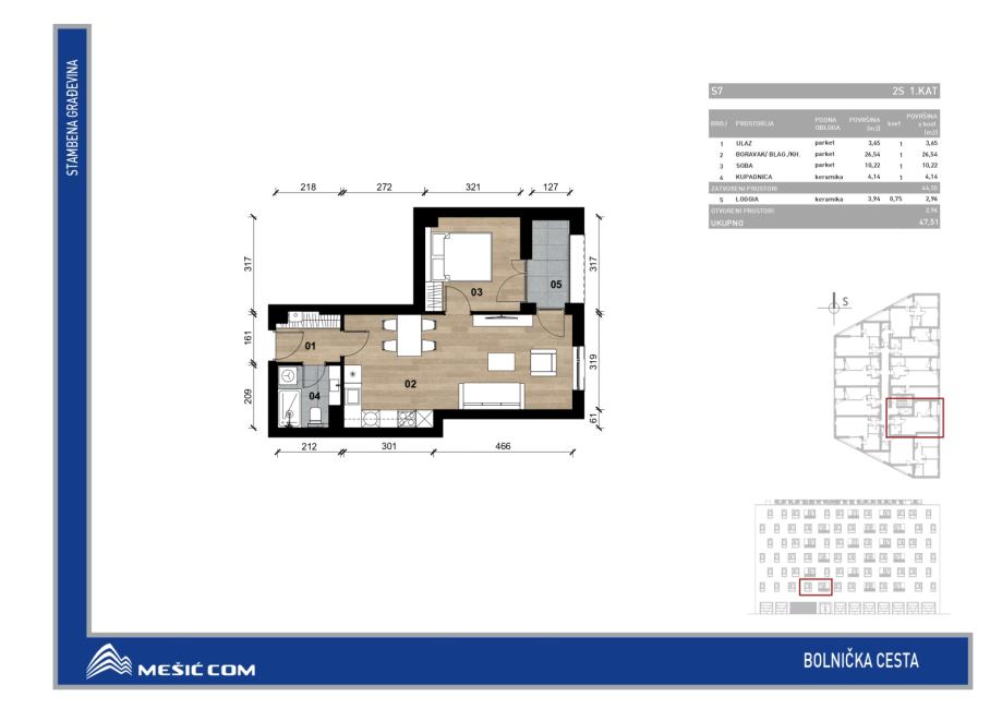 Uz kupnju stana obavezna je kupnja vanjskog parkirnog mjesta, garažnog parkirnog mjesta ili garaže.