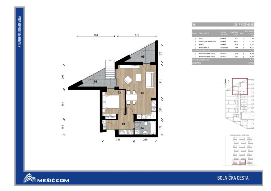 Uz kupnju stana obavezna je kupnja vanjskog parkirnog mjesta, garažnog parkirnog mjesta ili garaže.