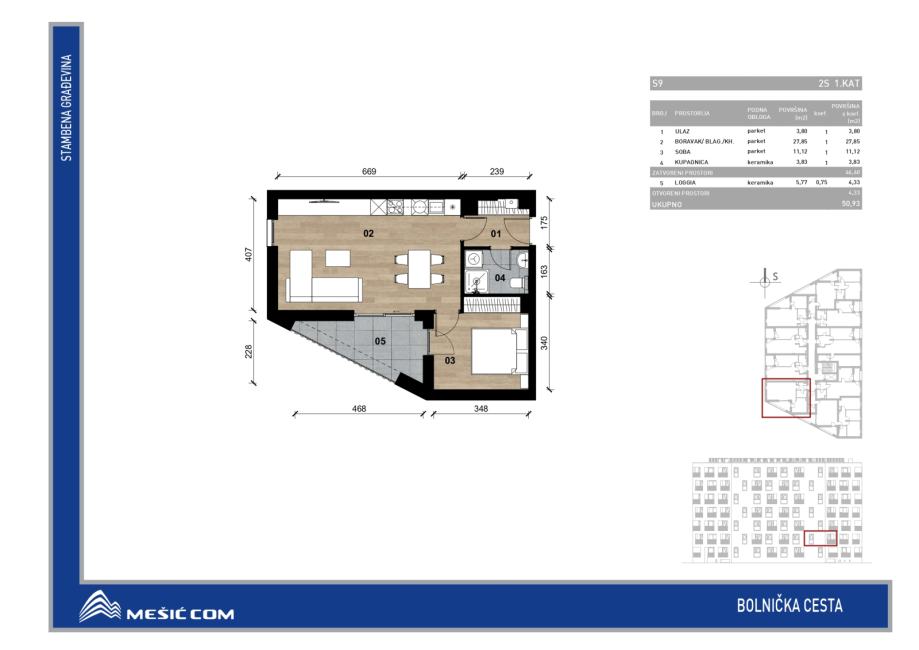 Uz kupnju stana obavezna je kupnja vanjskog parkirnog mjesta, garažnog parkirnog mjesta ili garaže.