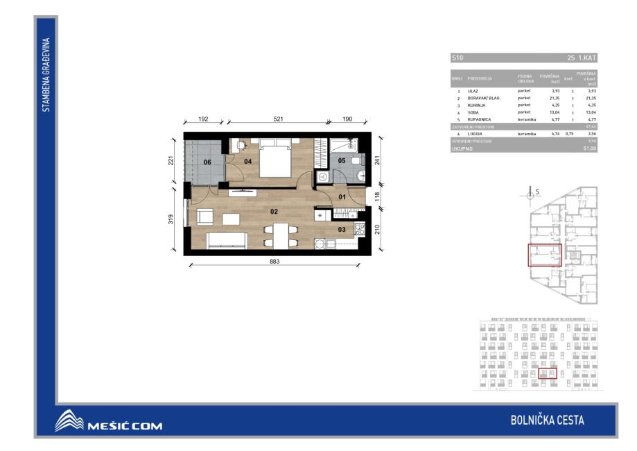 Uz kupnju stana obavezna je kupnja vanjskog parkirnog mjesta, garažnog parkirnog mjesta ili garaže.