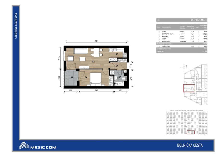 Uz kupnju stana obavezna je kupnja vanjskog parkirnog mjesta, garažnog parkirnog mjesta ili garaže.