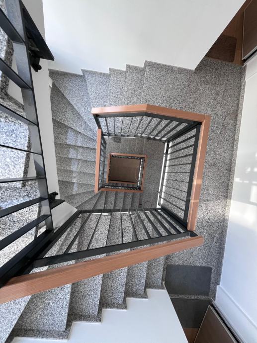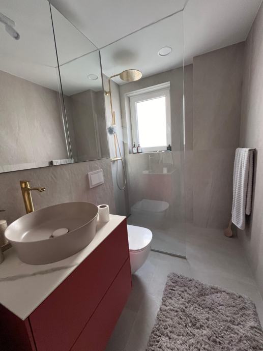 Podno grijanje u cijelom stanu pruža ugodan i ravnomjeran toplinski komfort, dok luksuzni walk-in tuš donosi osjećaj pravog wellness iskustva.