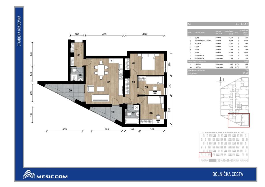 Uz kupnju stana obavezna je kupnja vanjskog parkirnog mjesta, garažnog parkirnog mjesta ili garaže.
