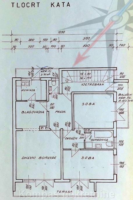 Sastoji se od predsoblja, kuhinje s blagovaonicom, dnevnog boravka, dvije spavaće sobe, kupaonice, toaleta.