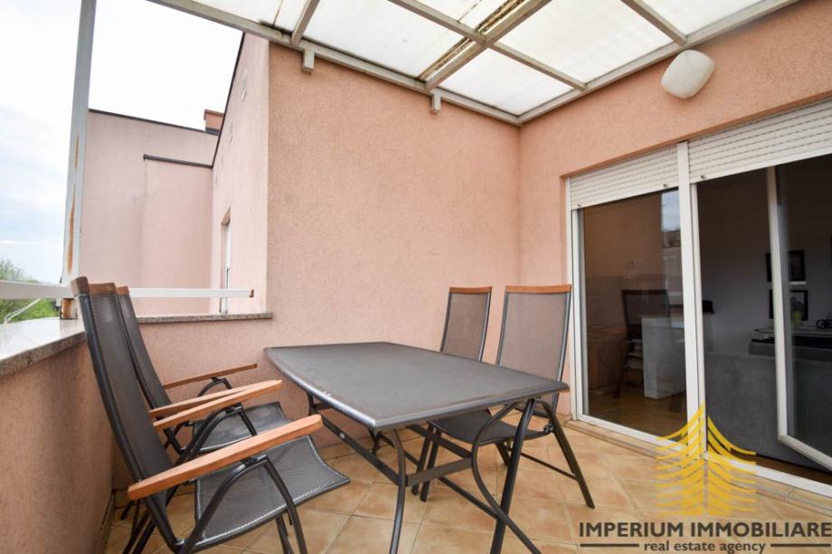 Stan je opremljen centralnim grijanjem i klimom, čime je osigurana ugodna temperatura tijekom cijele godine. Mirna lokacija dodatno doprinosi kvaliteti stanovanja, pružajući mir i privatnost.