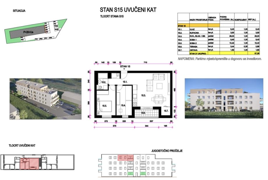 • Vanjsko parkirno mjesto uključeno u cijenu (obračunski 3,13 m²)