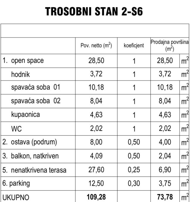 6. Svakoj stambenoj jedinici pripada sprema u podrumskom djelu i parkirno mjesto u dvorištu zgrade.