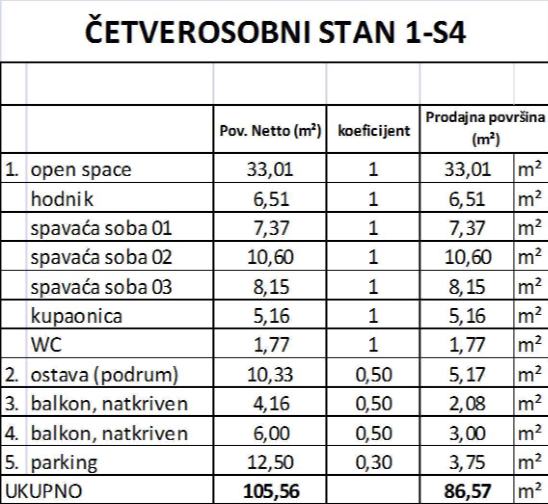 6. Svakoj stambenoj jedinici pripada sprema u podrumskom djelu i parkirno mjesto u dvorištu zgrade.