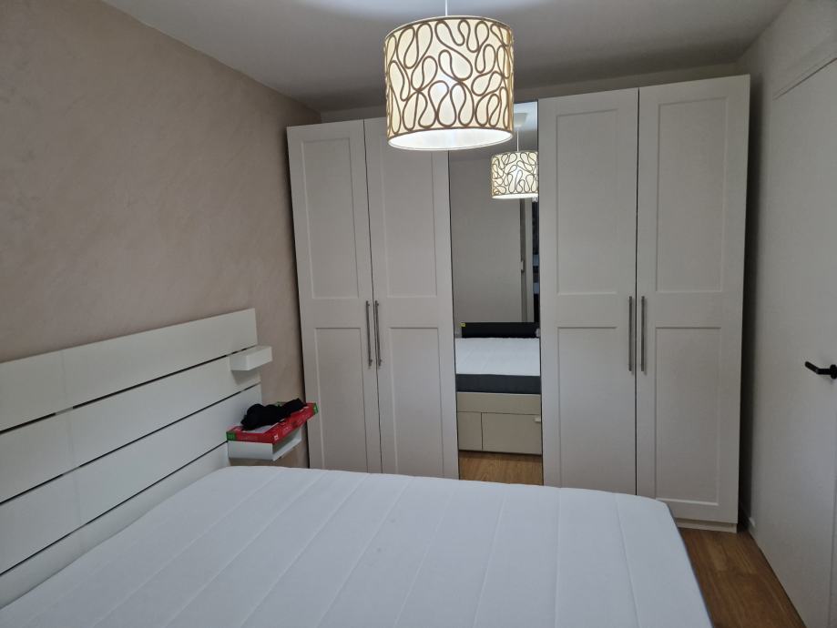 Iznajmljuje se u potpunosti namješten dvosoban stan (novogradnja) u Poljanicama ukupne površine 52 m2 s pripadajućim garažnim parkirnim mjestom (površine 16m2). Stan je opremljen vrhunskom opremom poput Samsung ClimateHub dizalice topline, Samsung Wind-free klime, komarnicima na prozorima, električne aluminijske rolete, protuprovalna vrata, visokokvalitetna unutanja stolarija sa skrivenim okovima i magnetskim bravama, podzbukne slavine u kupaoni itd. Iznos mjesečnog najma je 800 eura (plus režije) dok je iznos pologa 1400 eura (moguće platit u 2 obroka).