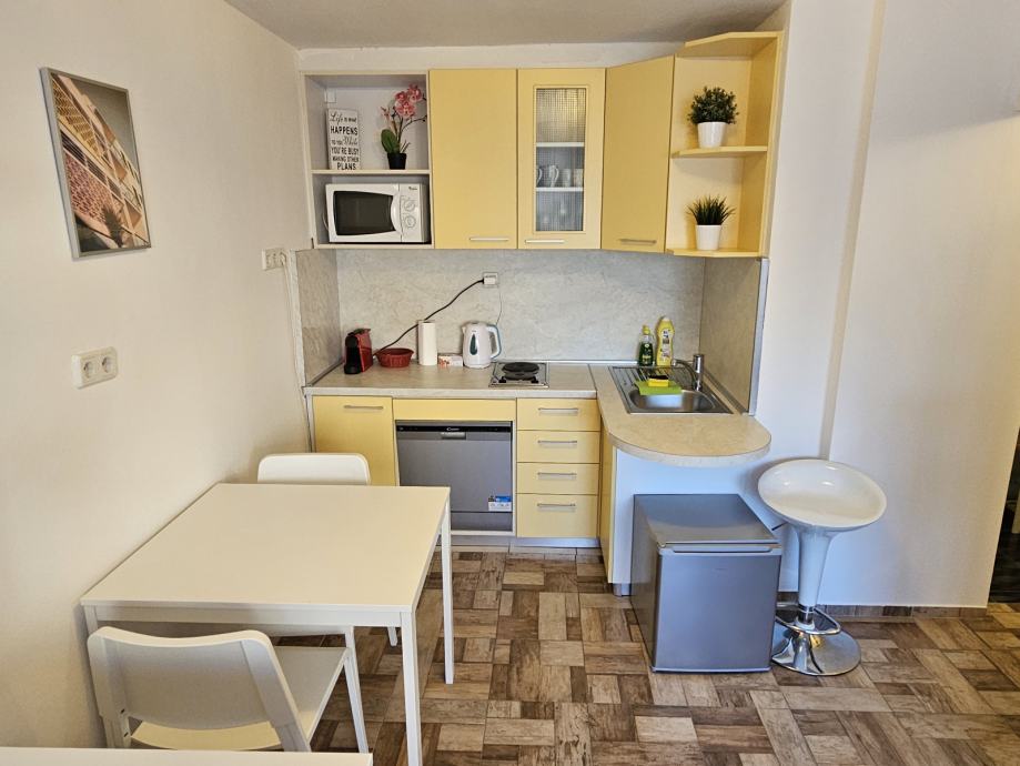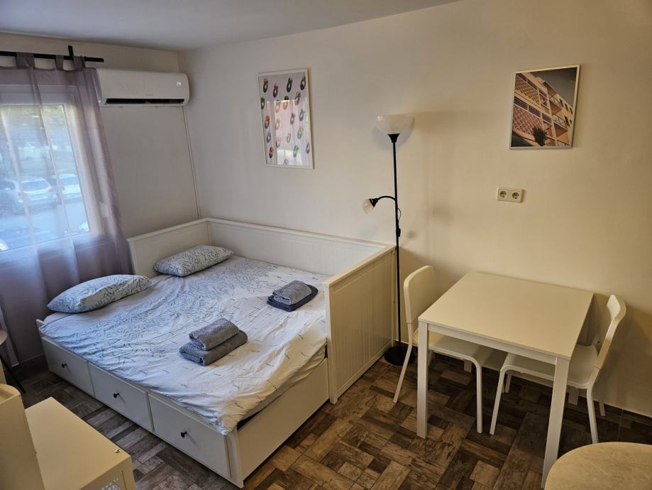 Iznajmljuje se garsonjera na 1. katu u zgradi na Prečkom. 1. min od tramvajske stanice, 50m od tržnice Prečko. Besplatan javni parking. U stanu se nalazi TV, električna grijalica, hladnjak, mikrovalna, ploća za kuhanje. Internet je dostupan na trošak najmoprimca. U stanu se nalazi posuđe i kompletna posteljina i ručnici.
