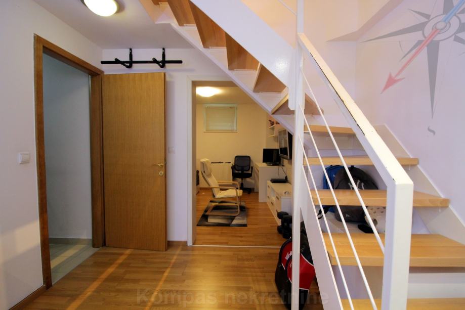 Stan ima protuprovalna vrata, video portafon, alarm, brzi internet, klima uređaj, plinsko centralno grijanje. Pričuva za stan je 180 kn. U stanu ostaje namještaj dječjih soba, ugradbeni ormari i kuhinja s kućanskim aparatima. Stan ima odvojena brojila za vodu, struju i plin. Pripada mu vanjsko nenatkriveno parkirno mjesto i vrt ( 16,7 m2 ) ispod balkona ( nisu uračunati u površinu stana ). Nalazi se u blizini autobusnih linija 114 i 134, tramvaja, tržnice i trgovačkih centara.