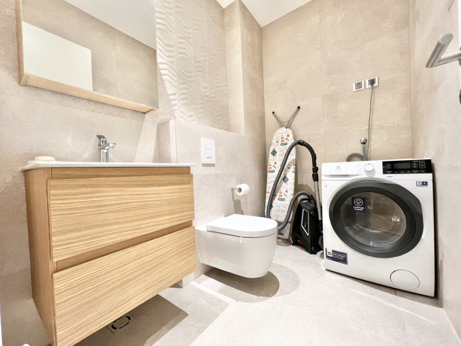 Technical equipment: washing machine, dishwasher, tumble dryer, air conditioning, LCD TV, video intercom, security door, shower, bathtub, underfloor heating, air conditioning in every room, energy class A+