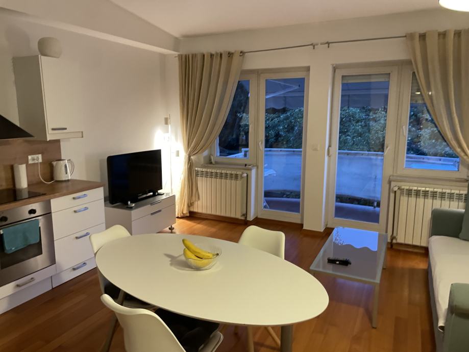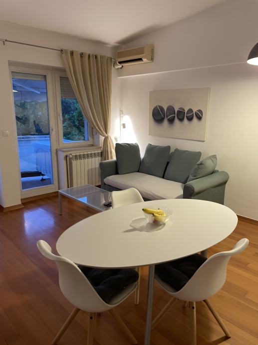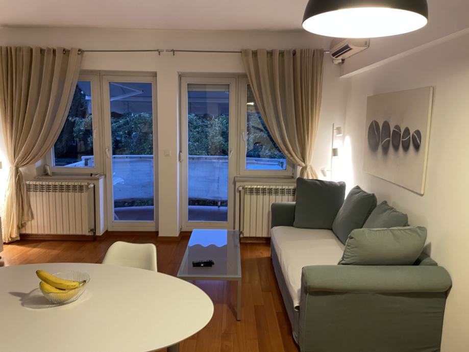 - potpuno namješten stan (ormari, perilica posuđa, napa, kompletno kuhinjsko posuđe, hladnjak, pećnica, indukcijska ploča, klima, perilica rublja, stol i stolice na balkonu...) i u vrlo dobrom stanju
