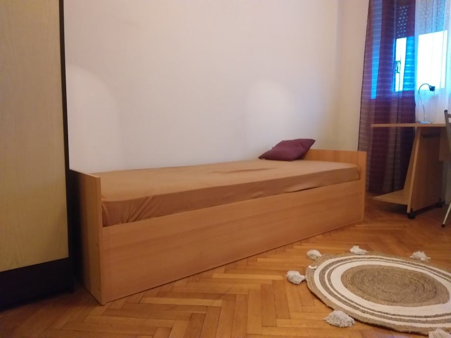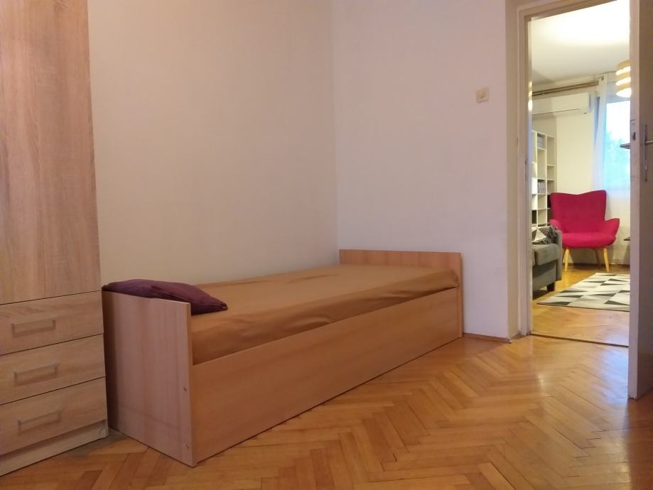 Iznajmljuje se stan u Budakovoj ulici (Kennedyev trg). Dnevni boravak, prostrana spavaća soba, hodnik, kupaona, kuhinja, ostava, zatvoreni balkon. Blizina Ekonomskog, Prometnog, Agronomskog i Šumarskog fakulteta. Blizina novootvorenog bazena Svetice.