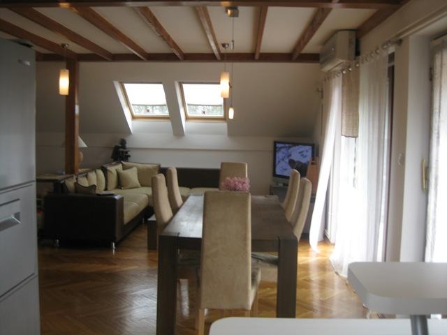 Prekrasan noviji stan u potkrovlju s balkonom i pogledom, u zelenilu, miru i tišini. Nalazi se u Jazbinskoj ulici - pored je odmah autobusna stanica,trgovina,dječje igralište. Stan ima zajednički vrt te natkriveno parkirališno mjesto - sjenic. Stan ima tri spavaće sobe,veliki boravak, kuhinju, te veliku galeriju (oko 30 m2) ! Mogućnost preuzimanja kredita!