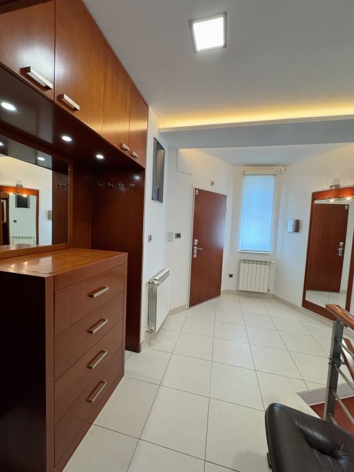 Prodaje se kvalitetno opremljen i namješten trosobni dvoetažni stan s privatnim dvorištem u Remetama.
