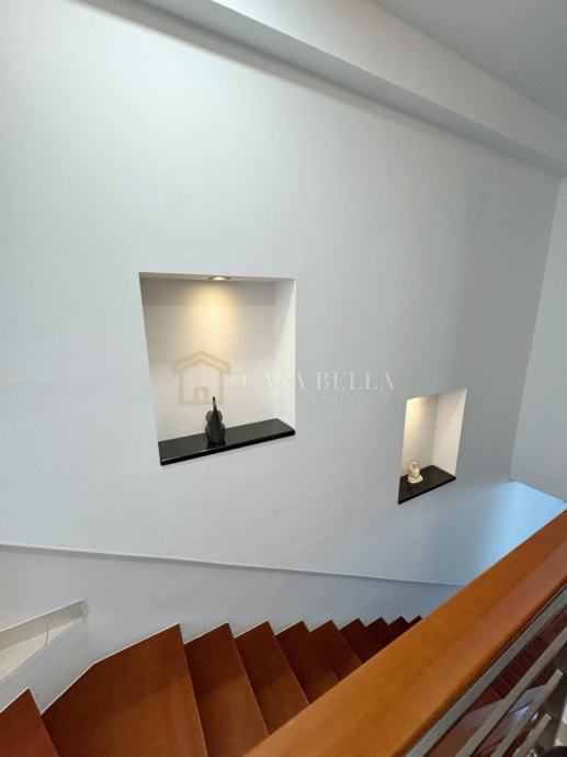 Neposredan izlaz na terasu i vlastiti vrt s kamenim roštiljem i vrtnom kućicom pruža dojam dodatnog komfora idealnog za opuštanje i uživanje na otvorenom.
