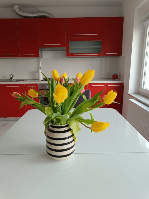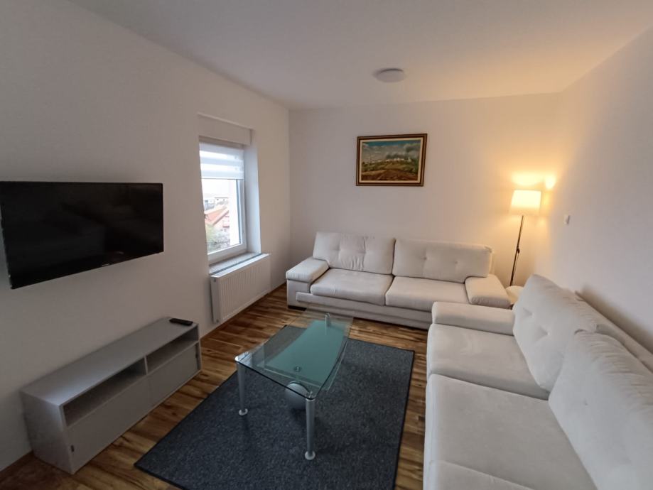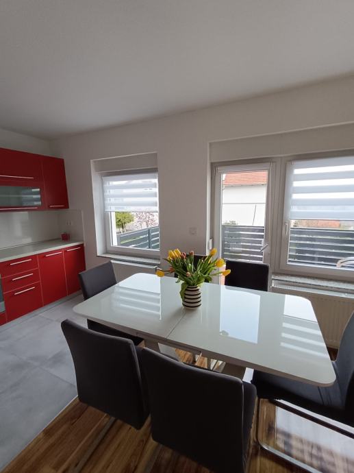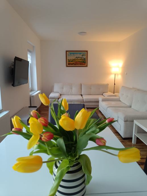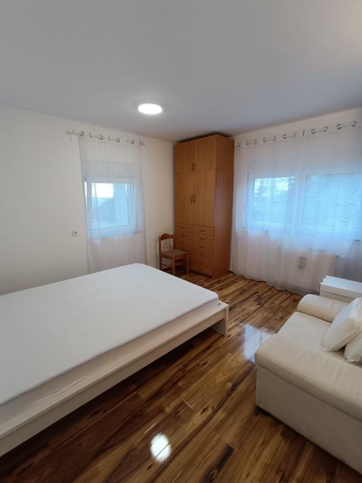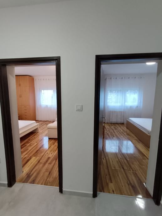 Stan je smješten na srednjoj etaži kuće, povišeno prizemlje i potpuno je opremljen novim namještajem.