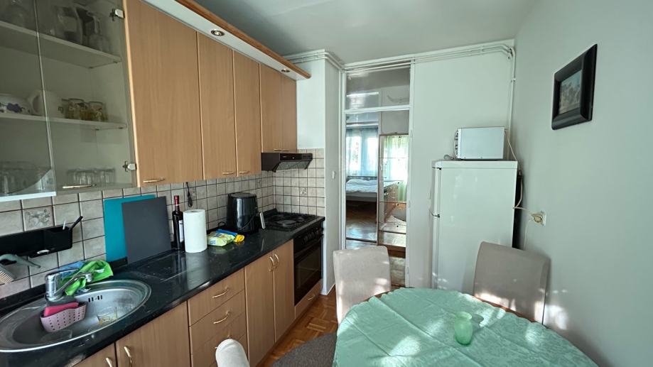 Stan se nalazi na 3. od ukupno 4 kata zgrade bez lifta, površine 51 m2 te se sastoji od spavaće sobe, dnevnog boravka, kupaonice (kada, wc, umivaonik, perilica rublja i bojler), kuhinje s blagavaonom i špajzom te hodnika. Stan je u potpunosti namješten, vrlo dobro osvijetljen prirodnom svjetlošću, s protuprovalnim vratima.