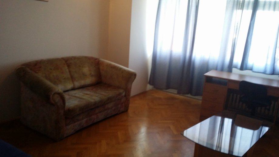 Iznajmljuje se komforan dvosoban stan samo studenticama. Stan je površine 56 m2 na šestom katu stambene zgrade. Sastoji se od ulaznog hodnika (u kojem je ugradbeni ormar). Iz hodnika se ulazi u WC,