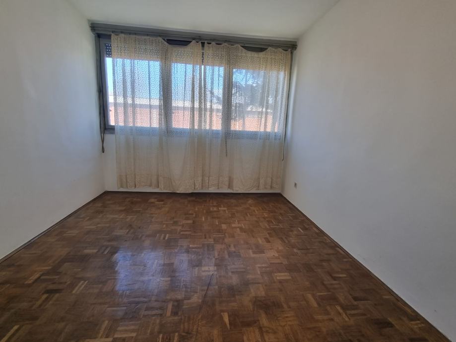 STAN S VELIKIM POTENCIJALOM preuređenja U TROSOBNI (vidjeti tlocrt gdje su svi pregradni zidovi prekriženi, tako da je moguće iste srušiti i formirati prostorije po želji.
