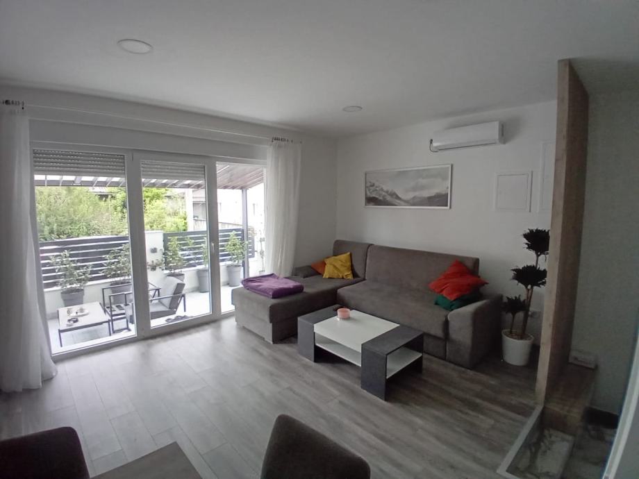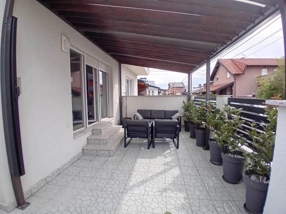 Dodatna vrijednost ove nekretnine je terasa od 35 m², idealna za opuštanje ili druženje. Terasa je opremljena platnom za zaštitu od sunca, što pruža dodatnu privatnost i ugodnu atmosferu.