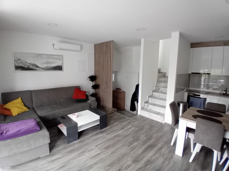 Stan ukupne površine 68 m² proteže se kroz dvije etaže (prizemlje i kat) u novogradnji iz 2022. godine.