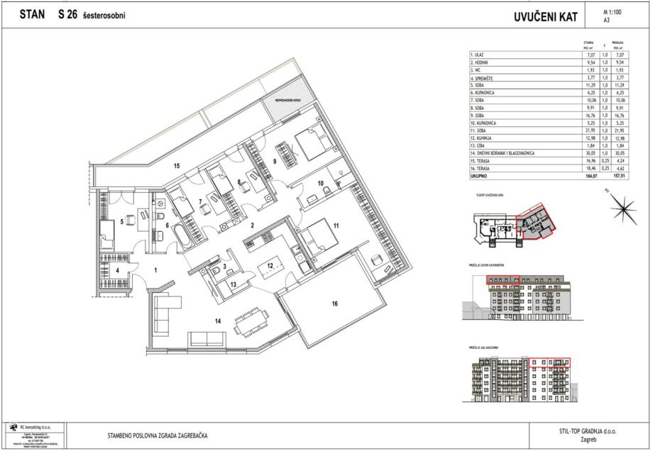Šesterosobni stan S26 nalazi se na zadnjem uvučenom katu novogradnje na Zagrebačkoj cesti. Ukupna mu je površina 184.07 m2 (neto 157.51 m2).