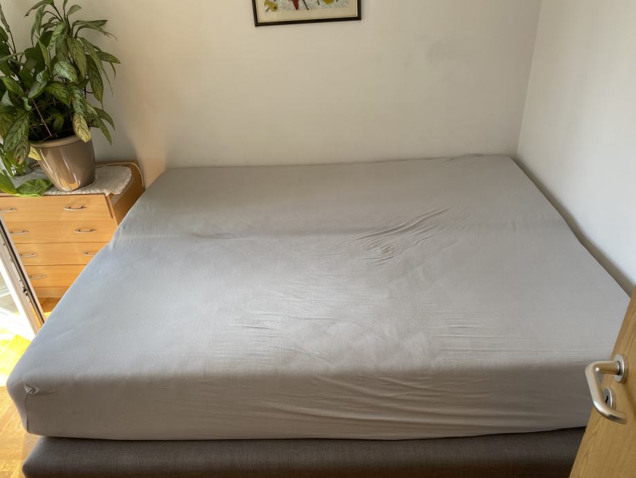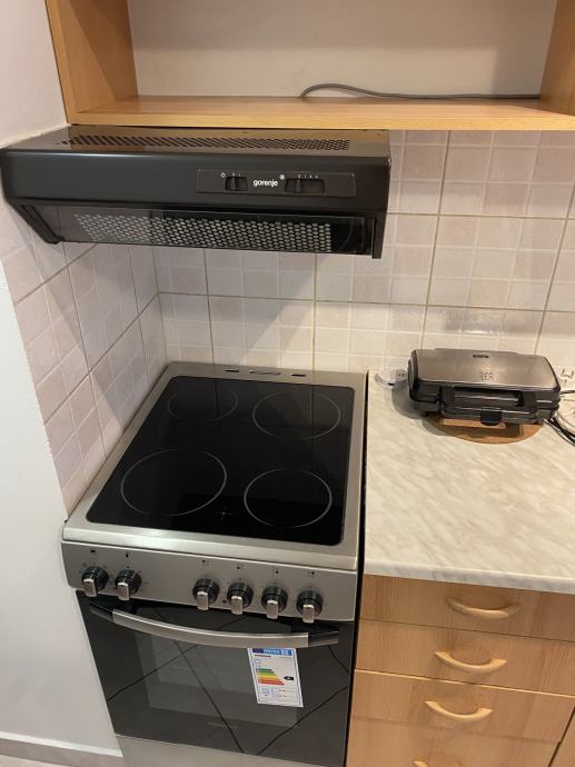 Novi krevet, trosjed, ormar, stednjak, televizor.