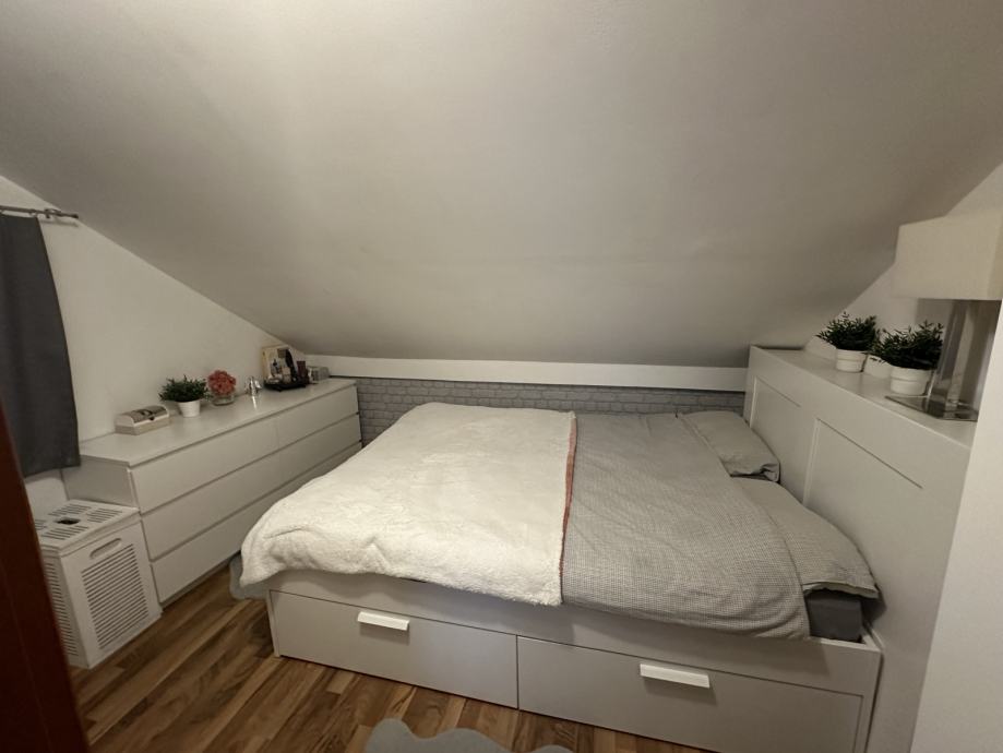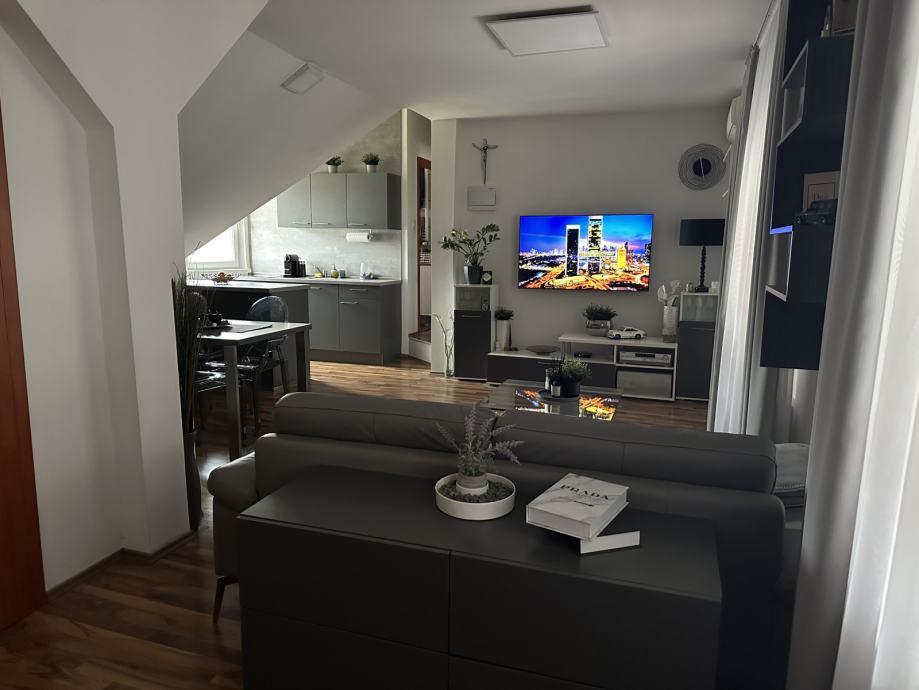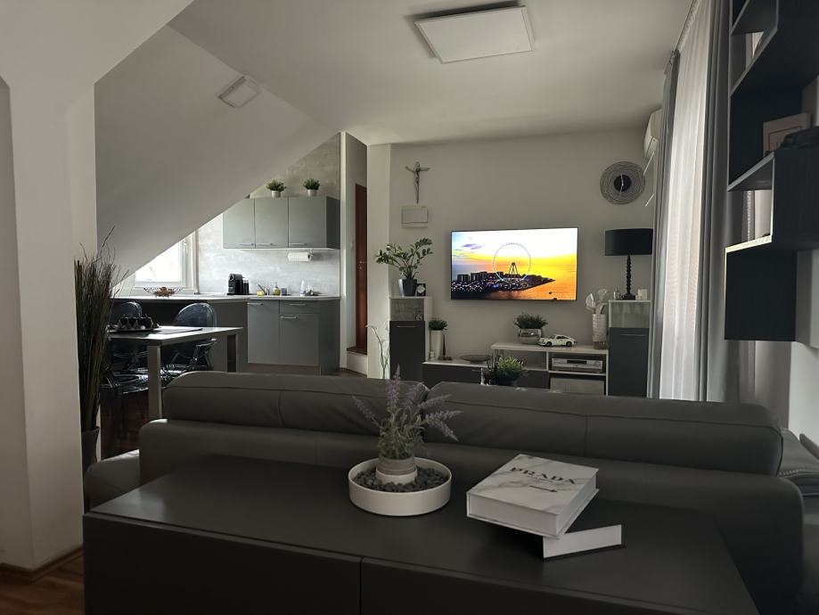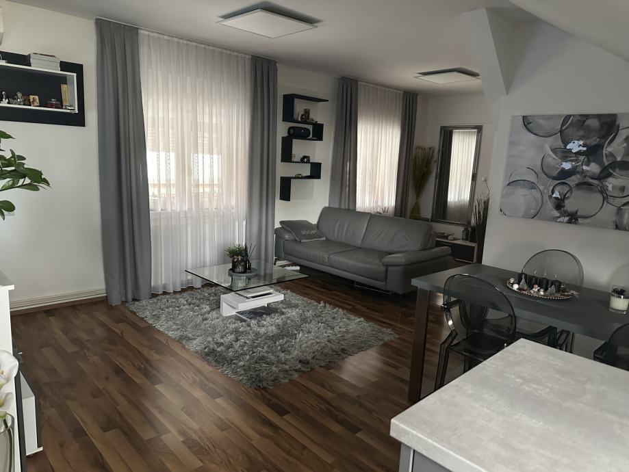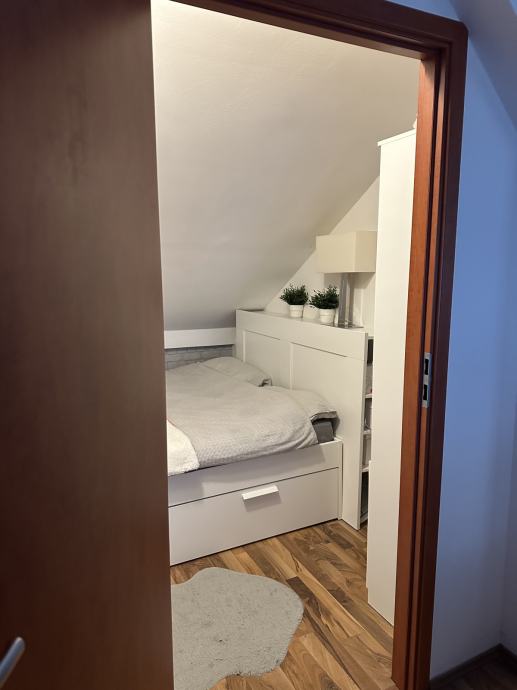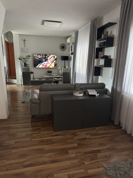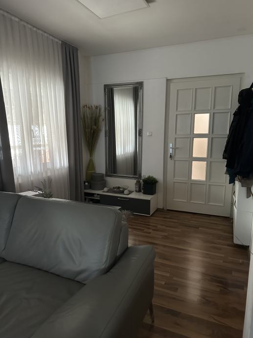 Iznajmljuje se 2-sobni stan na 1. etaži obiteljskoj kući u mirnoj ulici. Stan ima zaseban vanjski ulaz te se sastoji od velikog open space prostora u kojem su predsoblje, dnevni boravak, blagovaonica i kuhinja te odvojene spavaće sobe, kupaonice te natrivenog balkona.