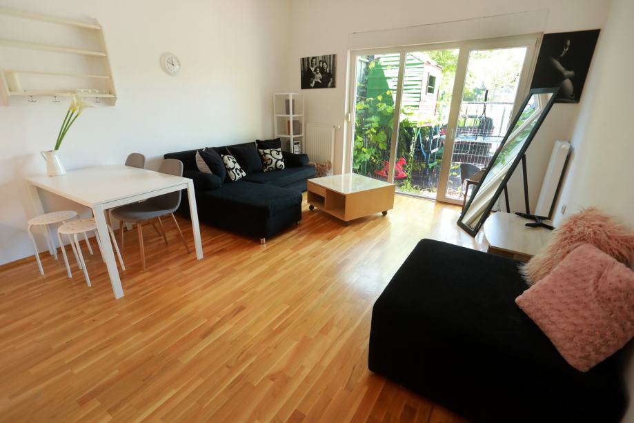 Novouređen, vrlo svijetao stan s terasom ispred dnevnog boravka. S obzirom da je prizemlje te zgrada ima odličnu termo izolaciju, po ljeti nije potrebna klima, a po zimi se troši malo plina za grijanje. Blizina autobusa, na par minuta od stana. Također, Remiza (tramvaj) je na udaljenosti od 10 min od naše lokacije. Kućni ljubimci su dobrodošli.