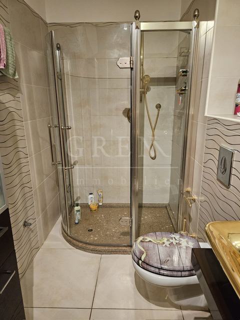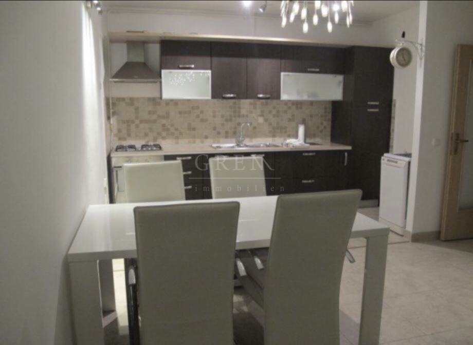 Nalazi se na 4. katu stambene zgrade novije gradnje, sa liftom, a sastoji se od prostranog hodnika/predsoblja, velikog dnevnog boravka sa kuhinjom, 2 spavaće sobe, kupaonicom i terasom koja ima pogled na park. Stan je klimatiziran i u cjelosti opremljen novim namještajem, novim kućanskim aparatima, ugradbenim ormarima, tapeciranom kožnom kutnom garniturom, tapeciranim kožnim krevetom te luksuzno opremljenom kupaonicom, a ulazna vrata stana su protuprovalna.