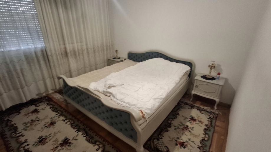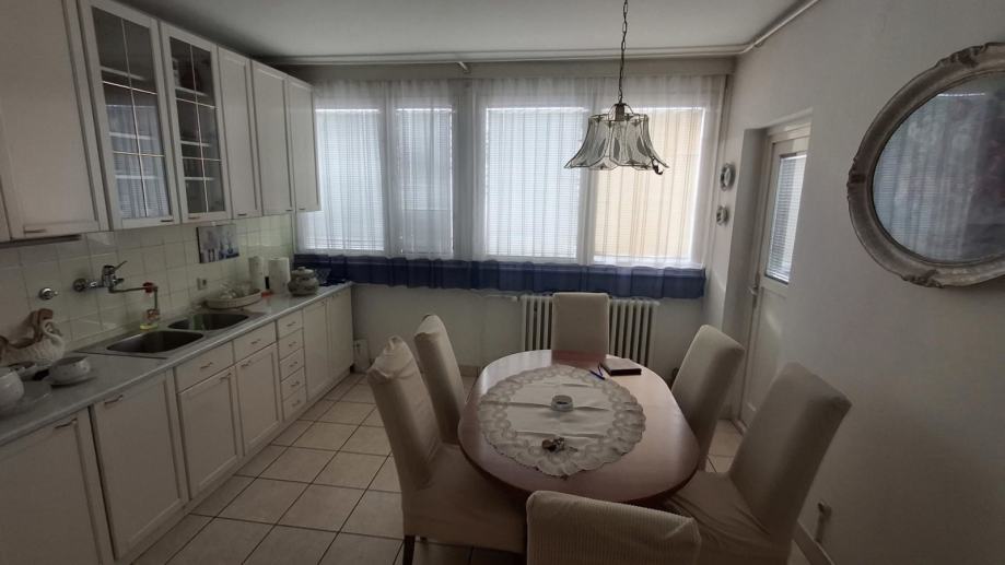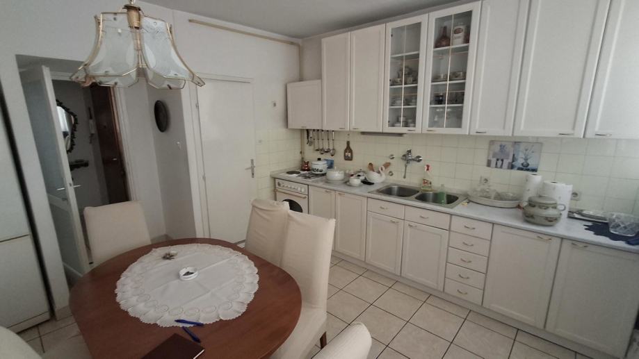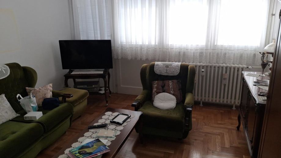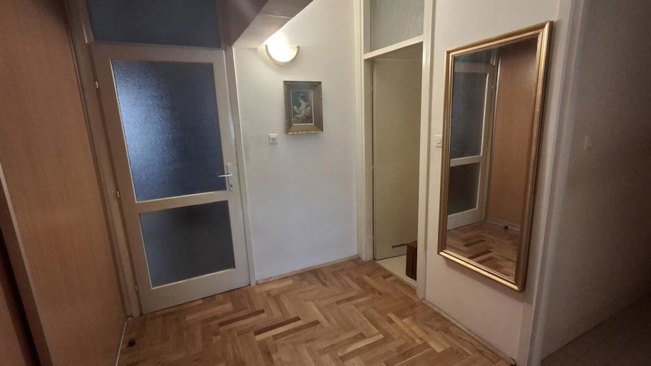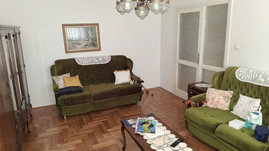 Stan je u zgradi starije, izuzetno solidne gradnje, renoviran prije nekoliko godina. Sastoji se od blagavaonice s kuhinjom (cca 16 m2), smočnice (1 m2), loggie (4 m2), hodnik (3,5 m2), dnevnog boravka (18m2), predsoblja s ugradbenim ormarima (4m2), kupaonice (3,5 m2), toaleta (1,5 m2) te dvije spavaće sobe (svaka po cca 11,5 m2).