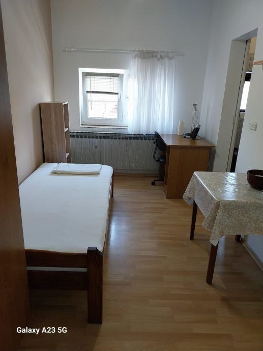 Stan je pogodan za studenta ili samca. Sastoji se od male sobe, kupaone i kuhinje. Napomena: stan nema pećnicu niti perilicu rublja. Cijena najma iznosi 250 € mjesečno, režije se plaćaju zasebno.